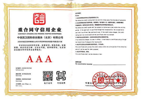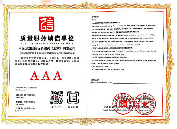 中保國(guó)衛(wèi)國(guó)際保安服務(wù)(北京)有限公司,屬中保國(guó)衛(wèi)集團(tuán)旗下子公司。能全方位的為大型客戶提供優(yōu)質(zhì)的安保、押運(yùn)服務(wù),是集人防和技防于一體的新型正規(guī)化綜合安保押運(yùn)服務(wù)企業(yè),提供人防、物防、技防、聯(lián)網(wǎng)報(bào)*、非武裝押運(yùn)等安防相關(guān)的一站式服務(wù)。 公司在國(guó)內(nèi)多省設(shè)立有分公司及分支機(jī)構(gòu),著重提升安全押運(yùn)、智能技術(shù)押運(yùn)及安全技術(shù)防范相關(guān)的服務(wù),業(yè)務(wù)范圍覆蓋全國(guó)一、二線城市、港澳地區(qū)以及海外地區(qū)。安保方面主要為政府機(jī)構(gòu)、金融機(jī)構(gòu)、企事業(yè)單位、醫(yī)療衛(wèi)生、高等院校、工業(yè)園區(qū)、大型商場(chǎng)、高檔住宅、智能商務(wù)樓、大型活動(dòng)提供門(mén)衛(wèi)、守護(hù)、巡邏、押運(yùn)(非武裝)、安全檢查、保安特勤、私人護(hù)衛(wèi)、消防中控、安全技術(shù)防范、遠(yuǎn)洋護(hù)航等全方位服務(wù),同時(shí)面向國(guó)際市場(chǎng),為中資企業(yè)在“一帶一路”沿線國(guó)家投資提供境外安保服務(wù)。 >> 更多內(nèi)容 |